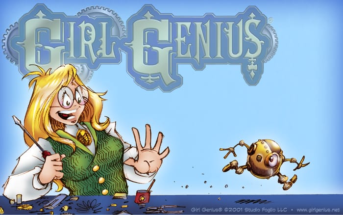 Girl Genius is a steampunk epic that follows the journey of Agatha Heterodyne. At the start of the series, Agatha unlocks her potential as a Spark, the mythic mad scientists who lead the nations of Europa, and is revealed as a member of the Heterodyne family. Through a series of trials and hardships, she takes control of her family’s ancestral home, only for it to be locked in stasis. This past year has seen Agatha on the verge of freeing her city, but once the time stop is removed, there may be greater consequences than first imagined.