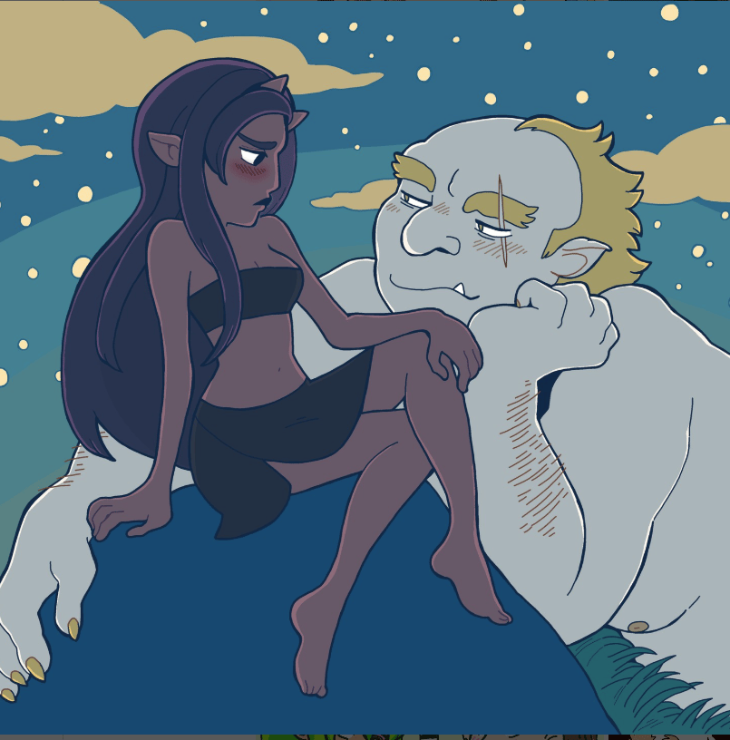 Available Here. 4⭐. Haus of decline is probably the most NFSW comic on this list and that’s saying something. It’s incredibly edgy and dark humor, and frankly is often hit or miss for me. The art has a simple style but fluctuates between highly detailed and simple sketches. The biggest reason that haus of decline is on this list is because this past year, after a break of over a year from comics, the artist came out as trans. Her work has always towed the line of acceptability, and often crossed that line, but seeing her incorporate trans themes into this style was a fascinating process. Her work was attracting some terrible edgelords, and seeing the way that she has managed to stay true to her original transgressive style without appealing to the worst people among us has been like watching an incredible tightrope act. I don’t always enjoy this comic, but I’m constantly thinking about it. And frankly I think that’s what the artist is going for more than anything.
