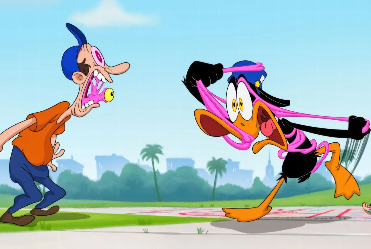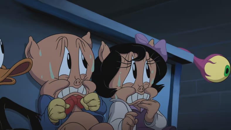 But that’s also not really important, because the movie quickly transitions from being a somewhat quirky coming-of-age story to an alien invasion movie. To be frank, the plot in this movie is pretty secondary. It exists as a convenient device to shake up the art or animation style, and even more importantly to get the audience from gag to gag. But nevertheless, shortly after Daffy and Porky finally get a job that they can competently perform at the local gum factory, Daffy learns that the gum has been compromised to act as an alien mind control device. The only problem is, Daffy is the worst person to share this sort of crucial information with society.